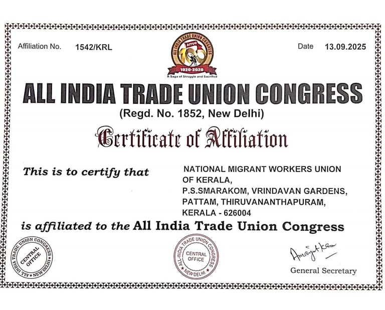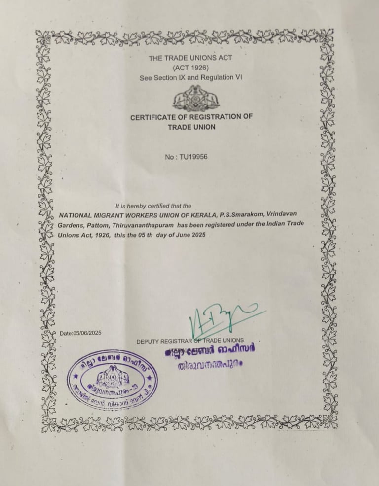 TRADE UNION CERTIFICATE